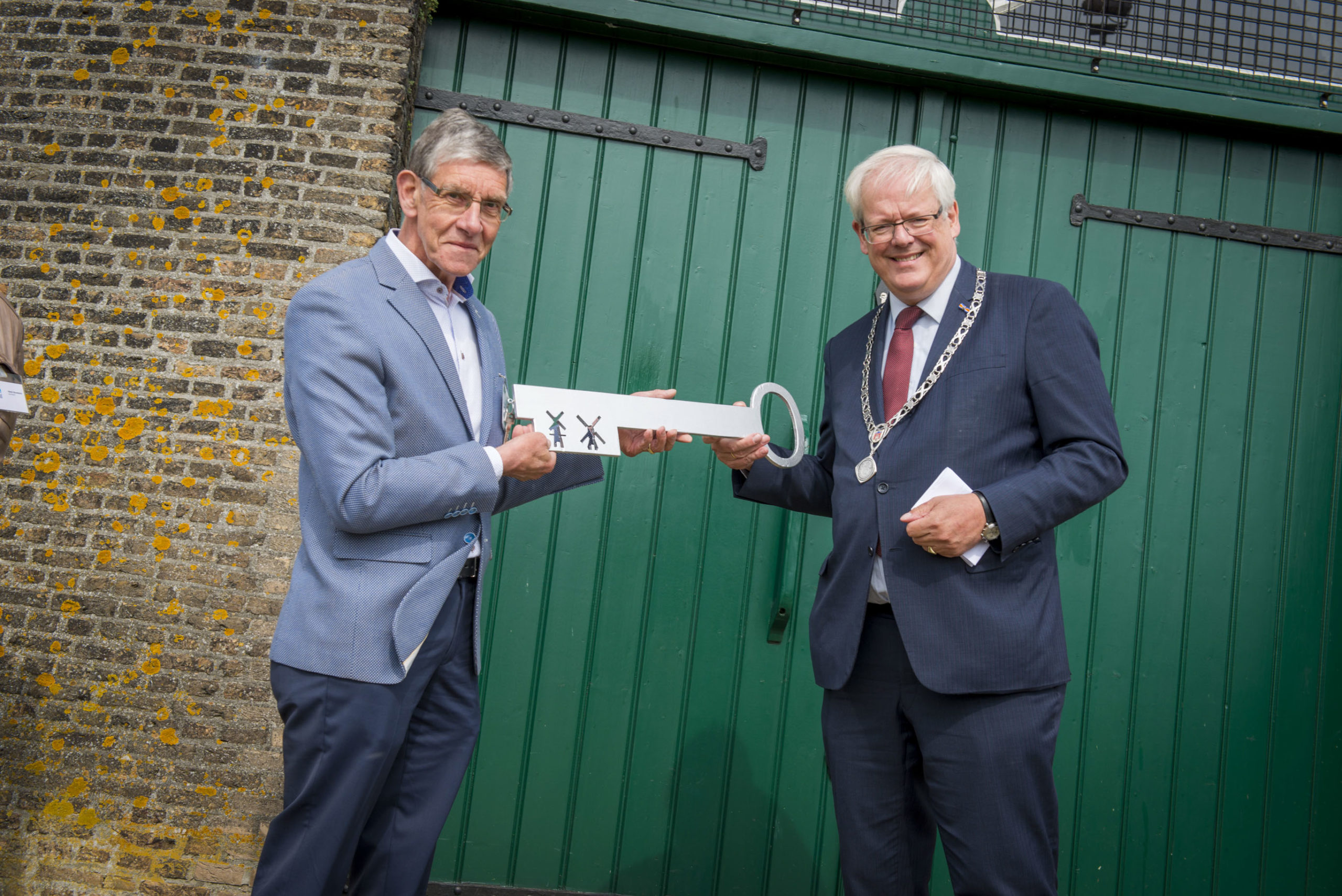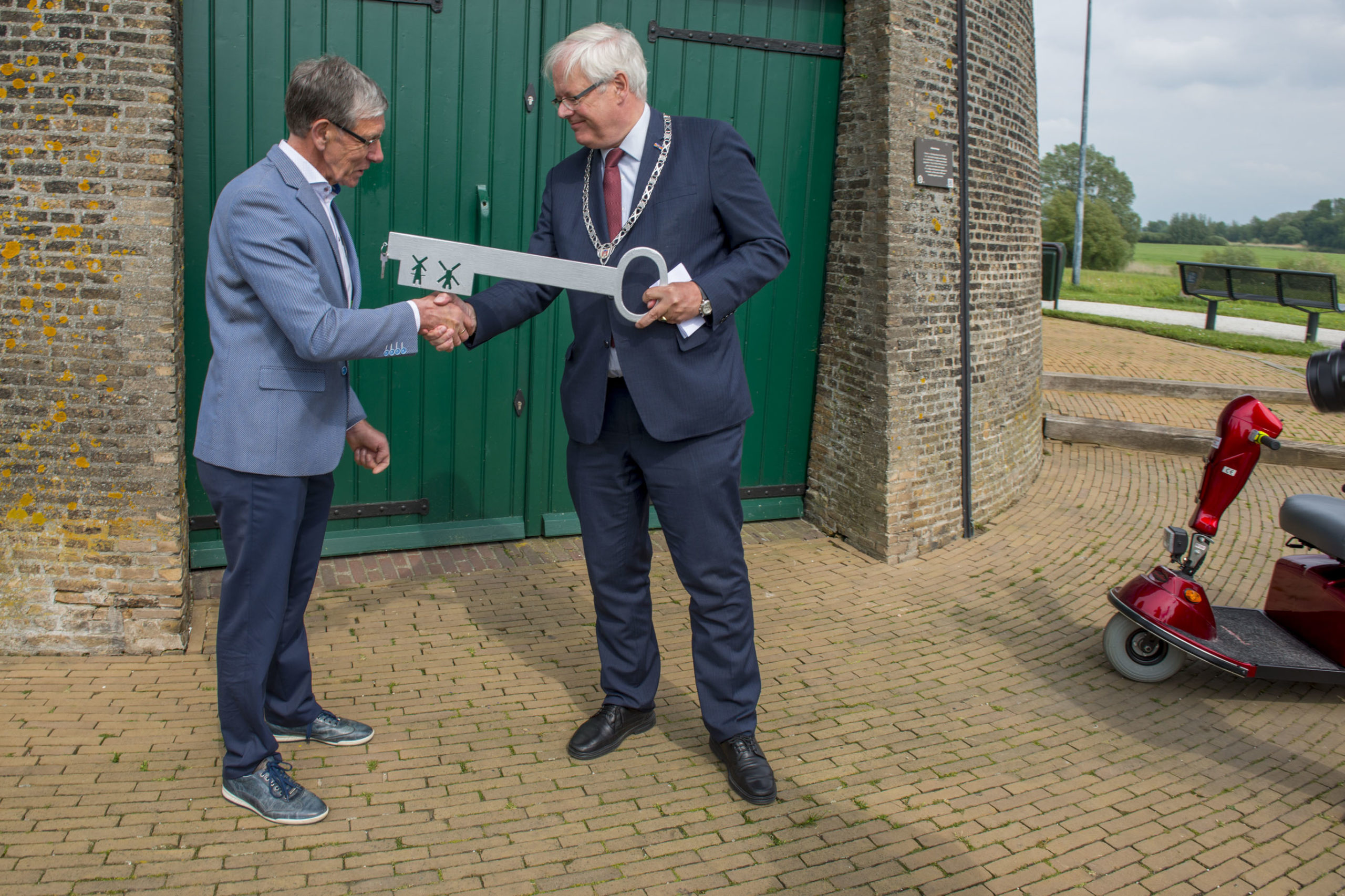 Op vrijdag 19 mei werden de vier Gorcumse molens officieel aan de molenstichting overgedragen. Dat gebeurde met een klein feestje in Korenmolen De Hoop aan de Dalemwal in Gorinchem. Burgemeester Govert Veldhuijzen overhandigde onze SIMAV-voorzitter Teus van Gelder een grote houten sleutel geheel in molenstijl uitgevoerd, met daaraan de sleutel van molen de Hoop. In zijn overdrachtsspeech sprak de burgemeester van een mooie tijd die werd afgesloten. Eind december vorig jaar waren de overdrachtspapieren al getekend en daarbij alle afspraken tussen de gemeente Gorinchem en de SIMAV molenstichting contractueel vastgelegd. Het werd steeds lastiger voor de gemeente om mensen te vinden om een goed beheer van de molens in de toekomst te kunnen garanderen. De gemeente is in gesprek gegaan met de SIMAV met als uitkomst de verkoop van de vier molens. De gemeente Gorinchem heeft er vertrouwen in dat de nieuwe eigenaar SIMAV molenstichting goed voor hun cultureel erfgoed zal zorgen. Voorzitter Teus van Gelder sprak daarna van lange onderhandelingen die er toe geleid hebben dat de overdracht van de molens voor alle partijen goed was. Hij vertelde dat er nu al plannen zijn om mooie dingen met één van de korenmolens te doen, ook in het belang van de Gorinchemse gemeenschap. En er is een restauratieplan dat over een periode van 4 jaar is uitgesmeerd te starten in 2019. Tot die tijd zal het noodzakelijke kleinere onderhoud plaatsvinden. In 2022, als het grote restauratieplan is afgerond, zullen de Gorinchemse molens er weer optimaal uitzien.