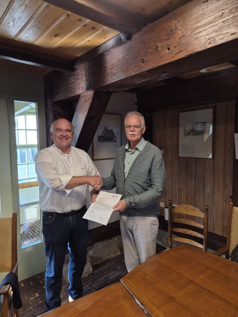 Tijmen Peter de With, voorzitter van de Raad van Toezicht met de nieuwe voorzitter Sjoerd J. Veerman